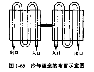 ②塑料熔體在充填型腔過程中,一船在澆口附近溫度較高,因而,應加強撓口附近的冷卻,為此,冷卻水應從撓口附近開始流向其他地方,如圖1-65所示。