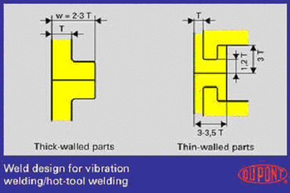 從理論上講,所有熱塑性塑料都是可以焊接的。但是有時(shí)塑料的焊接性能相當(dāng)不同。非晶態(tài)聚合物和半結(jié)晶聚合物不能焊接在一起。由于水氣會(huì)影響焊接質(zhì)量,所以尼龍等吸水性塑料焊接前需要預(yù)先干燥。為使焊接質(zhì)量最好,尼龍零件最好注塑后立即焊接,或焊接前將之放在干燥環(huán)境中。玻璃纖維和穩(wěn)定劑等樹脂添加劑同樣會(huì)影響焊接質(zhì)量。選擇適宜的工藝參數(shù)和零件設(shè)計(jì),未增強(qiáng)塑料的焊接裝配件的強(qiáng)度可以和其原料相媲美。對(duì)于玻璃纖維增強(qiáng)塑料而言,在焊接區(qū)域上,由于纖維分離和再取向使得強(qiáng)度減弱,這一點(diǎn)在設(shè)計(jì)中必須予以考慮。