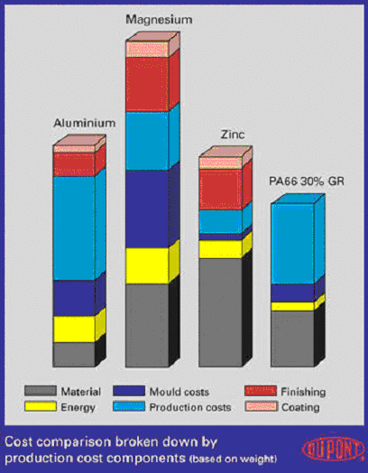 金屬設計必須進行機械加工,并經常通過許多裝配環節,才能完成單一部件,與之相反,塑料加工科技則能提供可觀的成本節約機會。