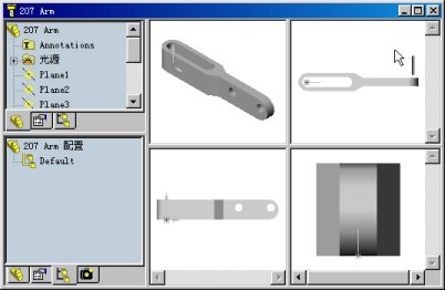 2.窗口的分割:雙擊或拖動窗口分欄線,可以將同一窗口進行分割,以便于在不同的窗口中觀看模型的不同視圖。對左側窗口進行分割可以同時顯示不同的內容,如FeatureManager設計樹、PropertyManager屬性管理器或ConfigurationManager配置管理器,如圖1所示;