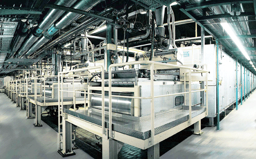 山特維克提供的薄膜流延設備都是基于優質的鏡面拋光鋼帶,因為只有高質量的鋼帶表面才能制造出高性能的薄膜。我們的拋光鋼帶都產自瑞典,擁有上百年的技術和經驗。在拋光鋼帶的生產過程中采用電渣重熔法(Electro-Slag-Remelting) 嚴格控制雜質含量來滿足極高品質的要求。冷軋鋼帶經整平和裁邊后可達到最高的平整度和直線度要求。全面的橫向連續拋光使產品達到最終的超鏡面拋光質量。